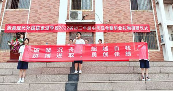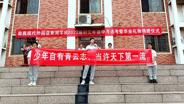 為踐青衿之志,6月16日上8時18分,南昌現(xiàn)代外國語象湖學校舉行2022屆初三年級中考送考暨畢業(yè)捐贈儀式,此次儀式由初三年級組長王蓓老師主持。
