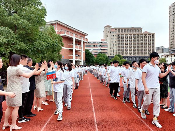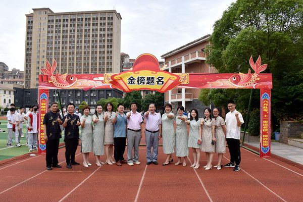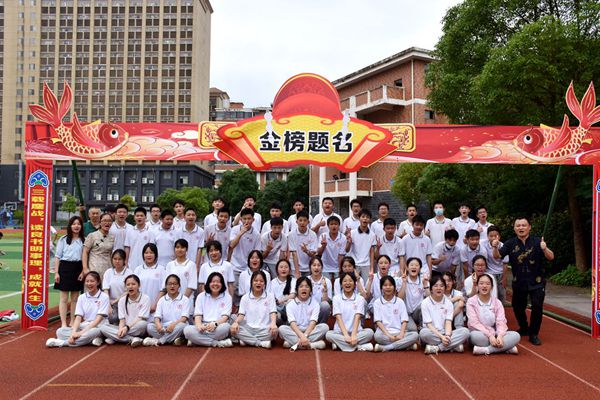 學校操場上,壯觀的“狀元門”高高聳立。校領導、初三全體教師,初二學弟學妹分列紅毯兩側,同樣用親切燦爛的笑臉為初三學子加油擊掌離別。同學們一個個越過“龍門”,奔向年輕的戰(zhàn)場,實現(xiàn)心中夢想。愿他們“錦麟化龍”“金榜題名”。