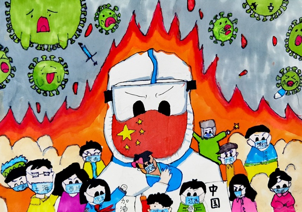 抗擊疫情畫展作品三