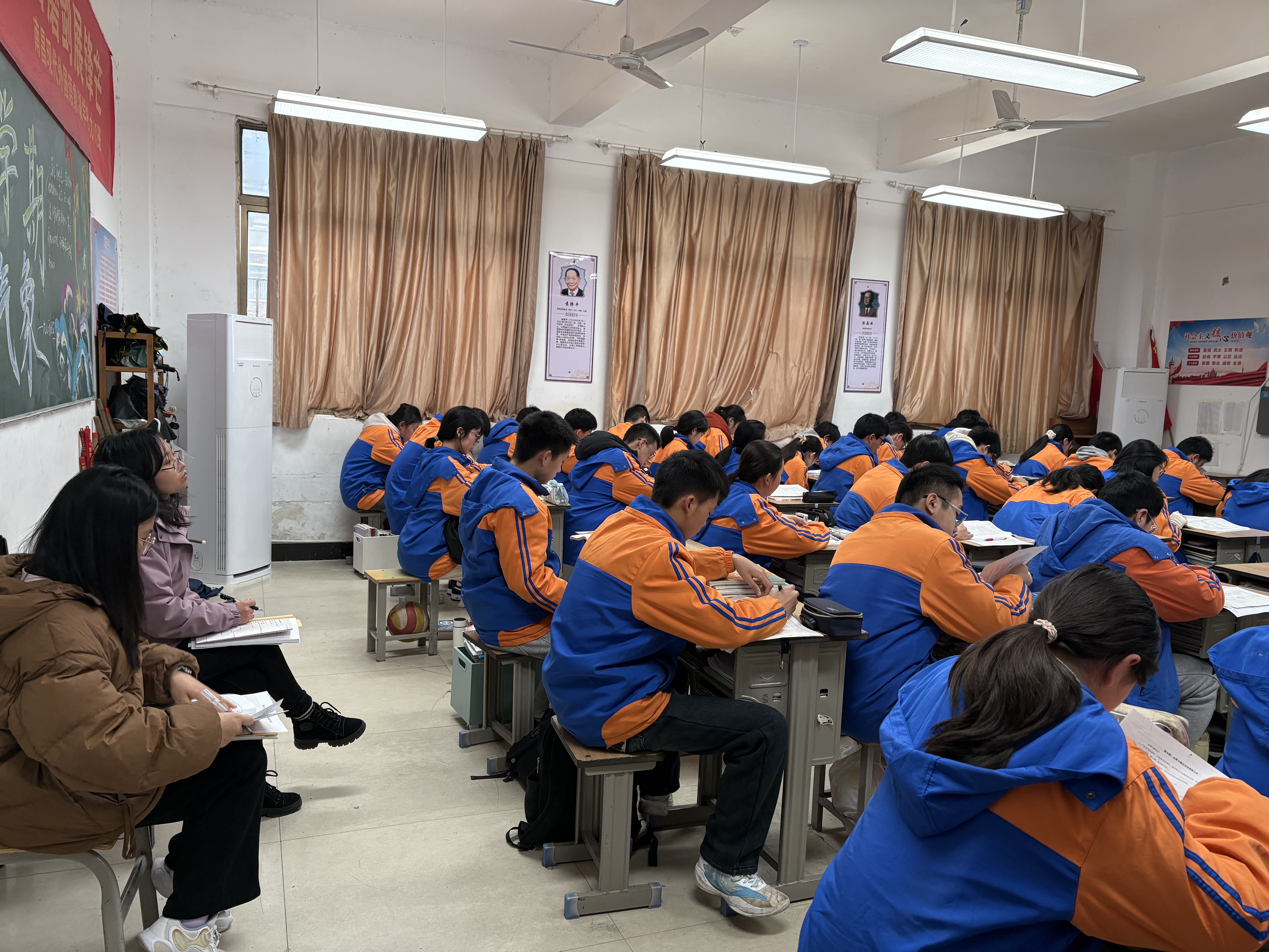 課堂上,不僅有教研員們蒞臨指導(dǎo)的身影,更有學(xué)校領(lǐng)導(dǎo)親臨現(xiàn)場,現(xiàn)外象湖王校長、初中部副校長余華林及學(xué)校其他領(lǐng)導(dǎo),均自始至終深入到課堂聽課,各學(xué)科的科任教師也分別進(jìn)入課堂觀摩。