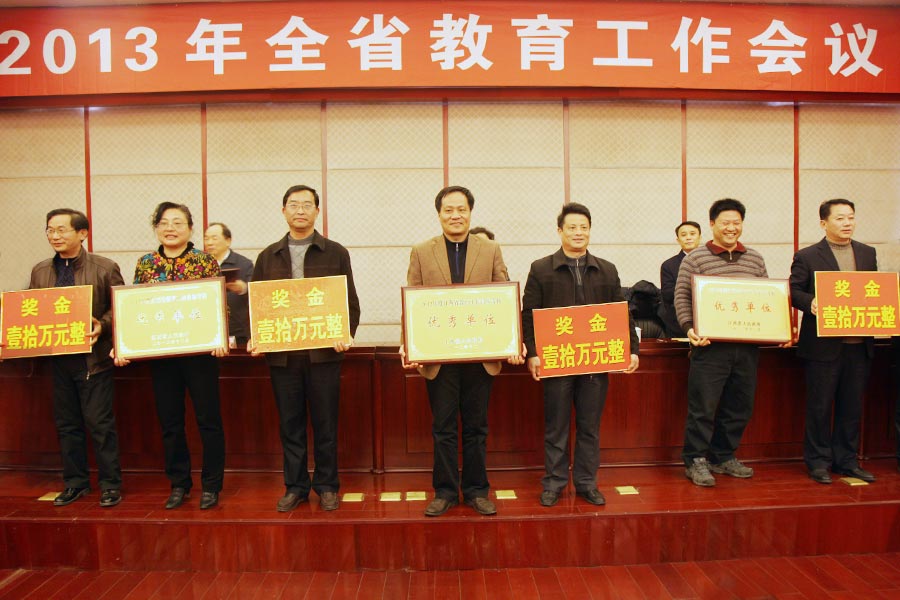 2012年度全省教育工作目標(biāo)考核優(yōu)秀單位在會(huì)上接受表彰。宜春市教育局、吉安縣教育局、龍南縣教育局、江西電子信息工程學(xué)校、江西財(cái)經(jīng)職業(yè)技術(shù)學(xué)院、南昌大學(xué)等6個(gè)單位先后在會(huì)上作交流發(fā)言。