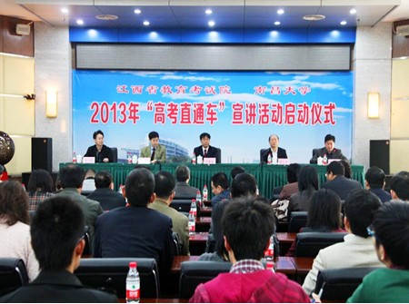 4月11日上午, 2013年江西“高考直通車”活動(dòng)啟動(dòng)儀式在南昌大學(xué)前湖校區(qū)舉行,省委教育工委委員、省教育考試院黨委書記萬普海出席儀式,省教育考試院黨委副書記、院長肖輝出席儀式并講話,南昌大學(xué)黨委委員、副校長鄧曉華出席儀式并致辭。