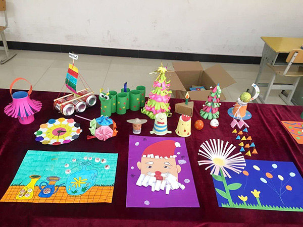 手工制作比賽,鍛煉了學(xué)生的動手操作能力,培養(yǎng)了學(xué)生的想象力、審美能力以及合作能力,從而讓學(xué)生從生活中發(fā)現(xiàn)美、感受美、創(chuàng)造美,也讓他們體驗到了保護環(huán)境、愛惜資源、廢物回收再利用的快樂。