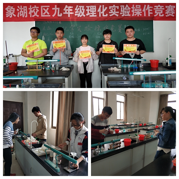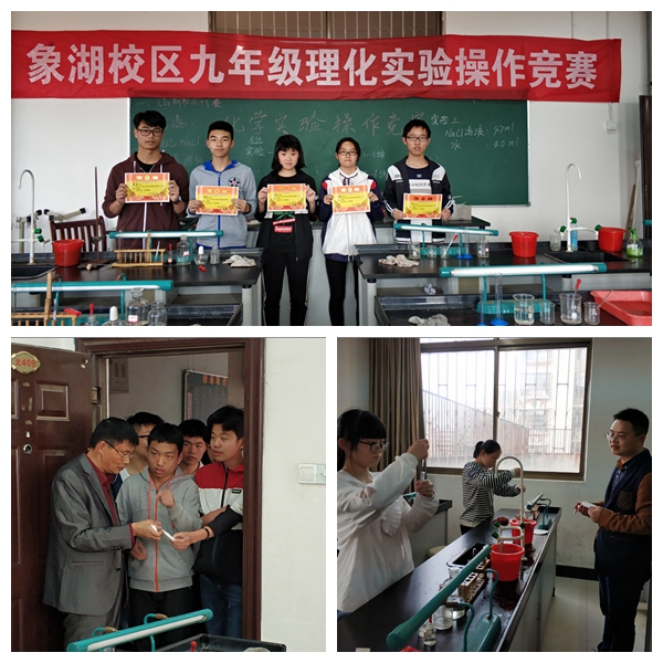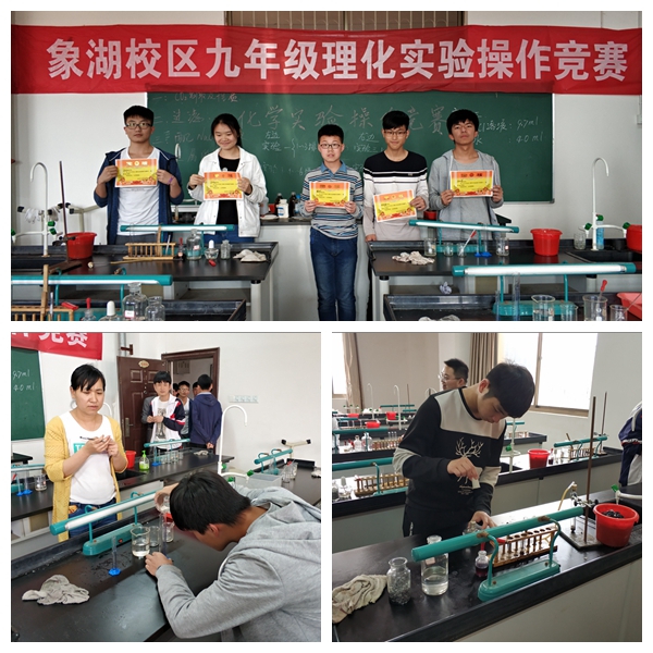 為了培養(yǎng)學(xué)生的觀察能力,訓(xùn)練學(xué)生的操作技能,以考促教,培養(yǎng)學(xué)生嚴(yán)謹(jǐn)認(rèn)真的學(xué)習(xí)態(tài)度和創(chuàng)新能力,全面提高實(shí)驗(yàn)操作水平,南昌現(xiàn)代外國(guó)語(yǔ)象湖學(xué)校于4月25日和26日下午,九年級(jí)開展了2018年理化實(shí)驗(yàn)操作競(jìng)賽。