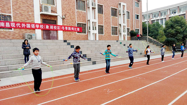 為更好的開展冬季體育運(yùn)動,增強(qiáng)學(xué)生的體質(zhì),培養(yǎng)學(xué)生團(tuán)結(jié)、拼搏的精神,12月27日下午,南昌現(xiàn)代外國語學(xué)校(象湖校區(qū))小學(xué)部舉行了一場“跳出健康、跳出快樂”為主題的冬季跳繩比賽。