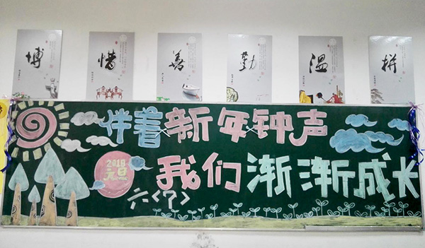 此次的“慶元旦,迎新年”黑板報(bào)成為了我校亮麗的風(fēng)景線。它不僅豐富了同學(xué)們的課余生活,展示了同學(xué)們的風(fēng)采,還為校園增添了節(jié)日的氣氛,同時(shí)預(yù)示著我校全體師生將以嶄新的面貌迎接2018年元旦的到來(lái)。