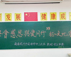 為迎接2018年元旦,營造節(jié)日喜慶氛圍,活躍校園文化生活,展示學(xué)生精神面貌,培養(yǎng)學(xué)生愛國、愛校情感,提高審美情操,凸顯班級特色,12月29日南昌現(xiàn)代外國語學(xué)校(象湖校區(qū))開展了“慶元旦 迎新年”黑板報(bào)評比活動