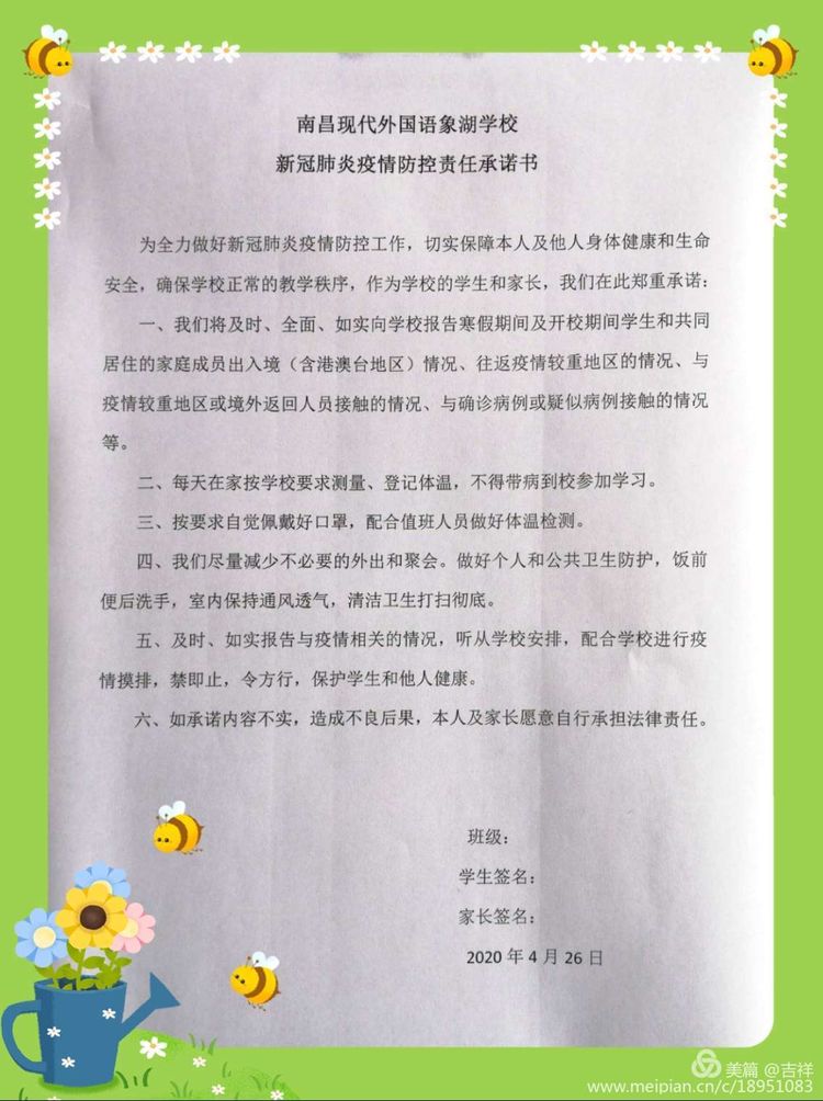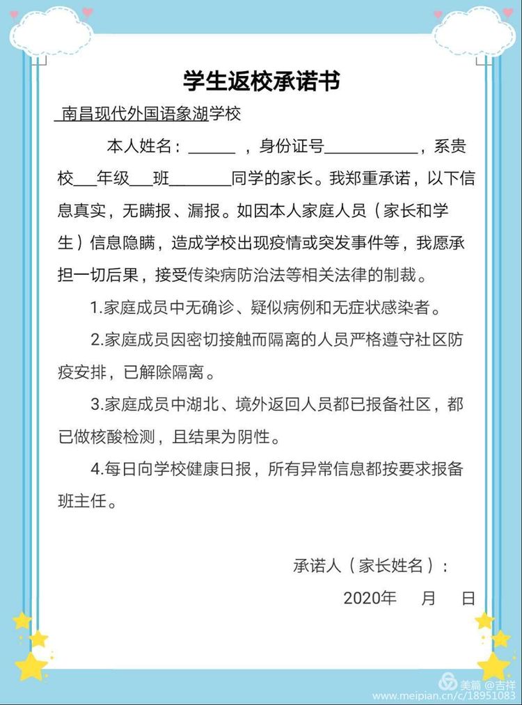 學(xué)生返校承諾書(shū)