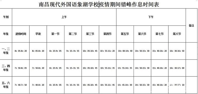 錯(cuò)峰作息時(shí)間表