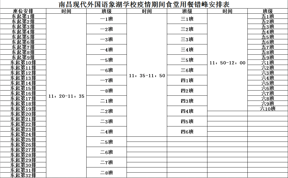 錯(cuò)峰就餐安排表