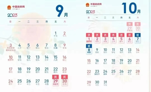 為了方便家長提前安排假期,現(xiàn)將國慶、中秋放假事項(xiàng)告知如下,敬請您配合學(xué)校做好孩子的監(jiān)護(hù)和安全教育工作。根據(jù)國務(wù)院辦公廳《關(guān)于2023年部分節(jié)假日安排的通知》,我校2023年中秋、國慶放假安排通知如下: