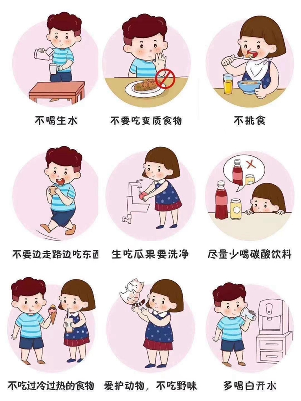 1.教育孩子勤洗手,注意飲食衛(wèi)生,防止病從口入。
