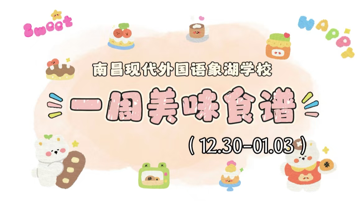 營養(yǎng)健康美味合理的營養(yǎng)是學(xué)生身體成長的基礎(chǔ)均衡的膳食是攝取營養(yǎng)的唯一途徑來看看這周我們準(zhǔn)備了哪些美味的飯菜吧!本周菜譜 12月30日-1...