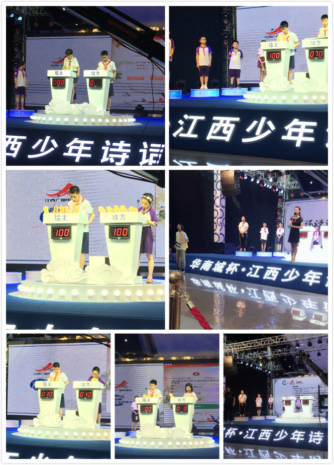 “弘揚詩詞文化,感受江西魅力”是由江西網(wǎng)絡(luò)廣播電視臺、江西省詩詞學(xué)會、南昌華南城共同舉辦的華南城杯·2018江西少年詩詞大會(第二季)的主題。本次大會題庫豐富且具有獨特性,由近百名語文教學(xué)工作者和詩詞專家選取近5000首詩詞,且與江西地域、人文相關(guān),并融入了部分近代詩詞作品。參賽單位是南昌市14所知名學(xué)校,師大、南大、交大附小,育新、向榮、郵政路學(xué)校,還有我們南昌現(xiàn)代外國語象湖等14所學(xué)校。我校采取分班級、年級竟選的方式推薦選手,經(jīng)過前期激烈角逐,最終十位同學(xué)過關(guān)斬將,被選為參賽選手。這十位同學(xué)分別是:六(1)班的楊洲、徐慧、劉加,六(2)班的鐘昊、李子璇、付子欣,六(4)班的蔣博文、朱樂群,六(5)班的劉晨、章浩。