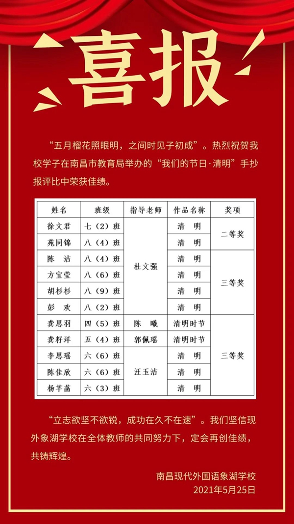 閱讀下一篇:兩校聯(lián)賽 | 南昌現(xiàn)代外國語象湖學(xué)校18名學(xué)子獲獎(jiǎng)
