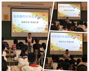 五月十一日下午二時許,南昌現(xiàn)代外國語象湖學校小學部六年級,在教學樓五樓多媒體教室舉行了以“感恩母親”為主題的朗誦比賽。 本次比賽由語文教研負責組織,有八位選手參加,十位老師擔任評委。另外,現(xiàn)場各
