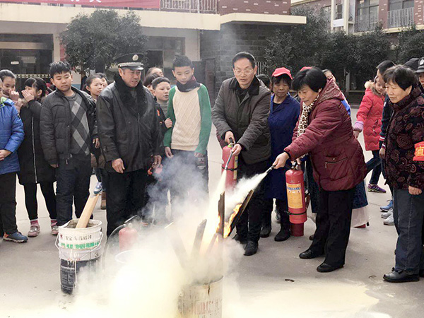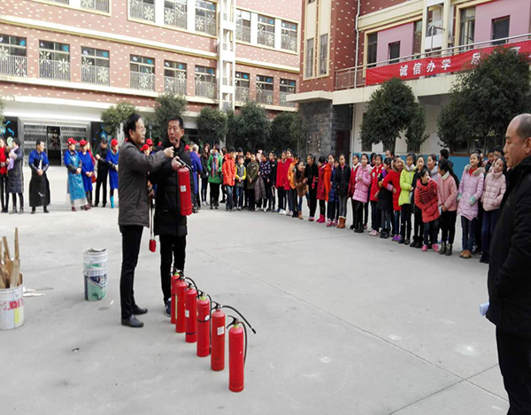 演示開始前李校長作了動員講話,強(qiáng)調(diào)了對于消防器材使用的操作培訓(xùn)很有必要,一方面可以增強(qiáng)全體師生的消防安全意識,使大家都來注意安全、重視安全;二是可以使大家面對初起火災(zāi)時能正確使用滅火器,將事故消滅在萌芽狀態(tài)之中。物業(yè)公司的保安魏隊長對正確使用滅火器進(jìn)行了詳細(xì)的講解,并且用滅火器進(jìn)行了實時演示,鐵桶里被點(diǎn)燃的熊熊火焰瞬時被撲滅!師生們發(fā)出了驚訝的聲音,對滅火器的正確使用方法師生們都有了深刻的理解。然后,校長、教師、初中學(xué)生、食堂職工、學(xué)校保安先后都進(jìn)行了滅火實時操作。