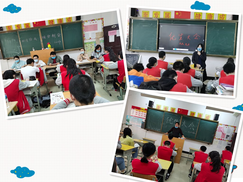 接著班主任進一步統(tǒng)一了思想,認清了形勢,振奮了精神,明確了中考工作目標和奮斗方向,堅定了抓好畢業(yè)班教育質(zhì)量的信心,并在此基礎上提出了本班培優(yōu)的具體目標,提出幾點要求:一是每位同學都要認真、有效、高質(zhì)量的課堂學習;二是充分利用好每一個零碎的時間;三是要和家長形成有效的作用合力,有困難及時和家長或老師提出;四是要求學生做到五勤,即眼勤、手勤、口勤、腳勤、腦勤。相信在老師的幫助和同學們共同的努力,全體師生一定會乘勢而上,再創(chuàng)佳績!