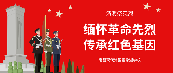 為認(rèn)真貫徹落實(shí)《新時(shí)代愛國(guó)主義教育實(shí)施綱要》《新時(shí)代公民道德建設(shè)實(shí)施綱要》,結(jié)合黨史學(xué)習(xí)教育等有關(guān)要求,充分運(yùn)用“清明節(jié)”這一傳統(tǒng)節(jié)日,深化“扣好人生第一??圩印敝黝}教育實(shí)踐活動(dòng),引導(dǎo)廣大未成年人堅(jiān)定理想信念,繼承優(yōu)良傳統(tǒng),傳承紅色基因,激發(fā)愛國(guó)情感,努力成長(zhǎng)為擔(dān)當(dāng)民族復(fù)興大任的時(shí)代新人。清明節(jié)前夕,南昌現(xiàn)代外國(guó)語(yǔ)象湖學(xué)校結(jié)合市教育局、市文明辦聯(lián)合下發(fā)的《關(guān)于組織開展2021 年度“清明祭英烈” 活動(dòng)的通知》的文件精神,開展以“祭英烈·學(xué)黨史·做新人”為主題,線上線下同步開展教育實(shí)踐活動(dòng),弘揚(yáng)民族精神,開展愛國(guó)主義教育。