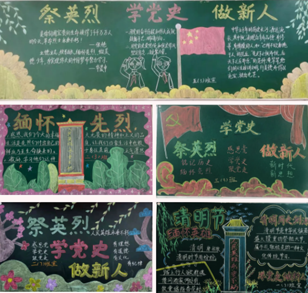 清明節(jié)是中華民族祭祀祖先、緬懷先烈的日子,為加強(qiáng)學(xué)生傳統(tǒng)文化教育、牢記中華民族歷史、弘揚(yáng)愛國(guó)主義情懷。在清明節(jié)來臨之際,南昌現(xiàn)代外國(guó)語(yǔ)象湖學(xué)校開展了以“緬懷革命先烈·傳承紅色基因”為主題的黑板報(bào)評(píng)比活動(dòng)。同學(xué)們通過收集有關(guān)清明節(jié)的歷史起源、節(jié)日習(xí)俗、歷史名人、詩(shī)詞歌畫等方面的知識(shí)。設(shè)計(jì)出一幅幅內(nèi)容豐富、創(chuàng)意新穎,布局合理的黑板報(bào),圖文并茂,賞心悅目。