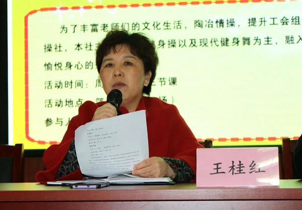 副校長(zhǎng)王桂紅匯報(bào)2021年學(xué)校工會(huì)工作