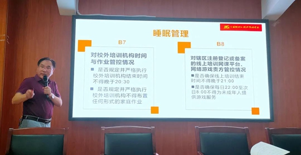 為全面貫徹黨的教育方針,加強(qiáng)中小學(xué)生作業(yè)、睡眠、手機(jī)、讀物、體質(zhì)管理(簡(jiǎn)稱“五項(xiàng)管理”),確保“五項(xiàng)管理”相關(guān)政策規(guī)定落實(shí)落地,促進(jìn)中小學(xué)生健康成長(zhǎng)。南昌現(xiàn)代外國語象湖學(xué)校積極行動(dòng),落實(shí)各項(xiàng)措施,確?!拔屙?xiàng)管理”落實(shí)到位。6月11日,學(xué)校召開月度總結(jié)暨落實(shí)“五項(xiàng)管理”推進(jìn)會(huì),全校全體教職工參加本次會(huì)議。大會(huì)由辦公室主任夏兆輝主持。