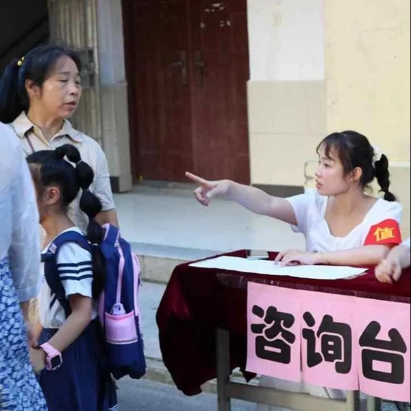 在校門(mén)口,老師們和保安叔叔們正進(jìn)行檢測(cè)體溫、查驗(yàn)健康碼、酒精消毒等疫情防控工作,為孩子們的安全保駕護(hù)航!除此之外,還設(shè)立了咨詢(xún)臺(tái),并在每個(gè)樓層都安排了小迎賓只為更好的引導(dǎo)孩子進(jìn)入自己的班級(jí)。