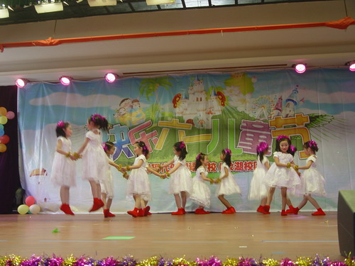 18個節(jié)目,師生同樂。全校720多個學(xué)生,全都上了臺,全都化了妝,全都穿上了節(jié)日的服裝。一年級是學(xué)校最小的孩子,可他們的節(jié)目水平一點(diǎn)不差,《一雙小小手》、《校園的早晨》顯出了孩子們質(zhì)樸、天真的天性,而《卡加布列島》、《快樂的節(jié)日》則淋漓盡致地表現(xiàn)出孩子們活潑好動的本質(zhì)??粗麄円粡垙埿腋5男δ槪_上臺下的老師們、家長們都好像個個喝了蜜,心里甜滋滋的。三句半《夸老師》是三(1)班的同學(xué)表演的,四個男學(xué)生手拿鑼鼓,敲打與說詞相間,普通話與南昌方言穿插,使人忍俊不禁,惟妙惟肖地將融洽的師生關(guān)系及對老師的熱愛表現(xiàn)出來。