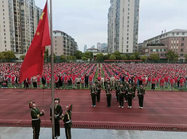 清明時(shí)節(jié),追思悠悠。為進(jìn)一步加強(qiáng)愛國主義教育,弘揚(yáng)民族精神,激發(fā)同學(xué)們對(duì)革命先烈的緬懷之情,2023年4月3日上午南昌現(xiàn)代外國語象湖學(xué)校開展了以“緬懷革命先烈,弘揚(yáng)愛國精神”為主題的升旗活動(dòng)。微風(fēng)習(xí)習(xí),儀仗隊(duì)邁著鏗鏘有力的步伐護(hù)送國旗走向國旗臺(tái),在雄壯激昂的國歌聲中將鮮艷的五星紅旗冉冉升起。