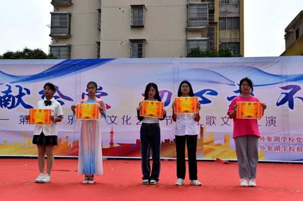 本次“樂善”紅歌藝術(shù)節(jié)以“紅歌獻(xiàn)給黨 初心永不忘”為主題,旨在激勵全校師生的奮斗精神,奮斗正青春,青春中國夢,讓每一位學(xué)生都成為最好的自己。校園有了文化,學(xué)校就有了深厚的歷史底蘊(yùn);校園有了藝術(shù),學(xué)校就有了靈動的精神風(fēng)采;“樂善”紅歌藝術(shù)節(jié)為師生們提供了多樣化的成長平臺,愿我們不忘初心,繼續(xù)前行;愿我們青春奮斗,共筑中國夢!愿現(xiàn)外象湖的每位青少年都燦若辰星,每朵花都能芬芳未來!