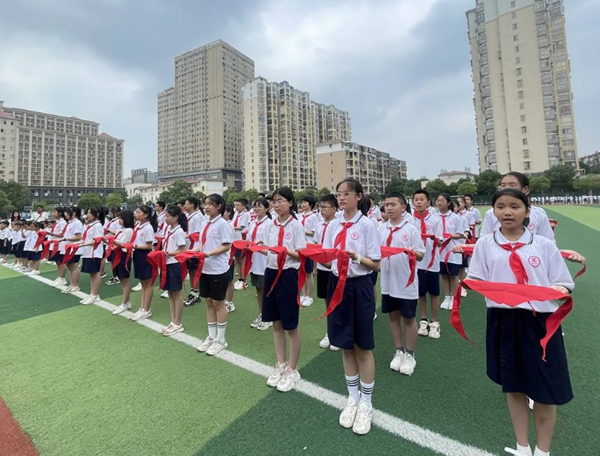 為了培養(yǎng)學(xué)生繼承和弘揚(yáng)中國少年先鋒隊(duì)傳統(tǒng),增強(qiáng)學(xué)校少先隊(duì)組織力量。2023年6月7日,南昌現(xiàn)代外國語象湖學(xué)校舉行了主題為“逐夢心向黨 領(lǐng)巾齊飛揚(yáng)”少先隊(duì)員入隊(duì)儀式。74名一年級的同學(xué)們戴上了鮮艷的紅領(lǐng)巾,成為了光榮的少先隊(duì)員,燦爛的笑容綻放在每一位新隊(duì)員的臉上。