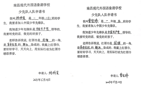 入隊(duì)儀式前,各中隊(duì)輔導(dǎo)員帶領(lǐng)新隊(duì)員學(xué)習(xí)了“六知六會一做”,了解少先隊(duì)的歷史與光榮傳統(tǒng),明確了身為一名隊(duì)員應(yīng)當(dāng)遵守的行為規(guī)范以及肩負(fù)的責(zé)任。新隊(duì)員們在中隊(duì)輔導(dǎo)員的指導(dǎo)下,慎重寫下了《入隊(duì)申請書》,制作了精美的入隊(duì)手抄報(bào)。
