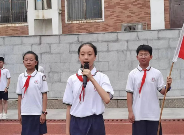 一(5)中隊(duì)杜杰宇同學(xué)代表一年級全體少先隊(duì)員講出了自己的心聲。全體少先隊(duì)員時(shí)刻準(zhǔn)備著為共產(chǎn)主義事業(yè)而奮斗!他們決心在星星火炬的指引下,牢記黨的教誨,全面發(fā)展,茁壯成長。用自己的行動讓紅領(lǐng)巾更紅,讓隊(duì)旗更亮,為學(xué)校爭光、為隊(duì)旗增輝!