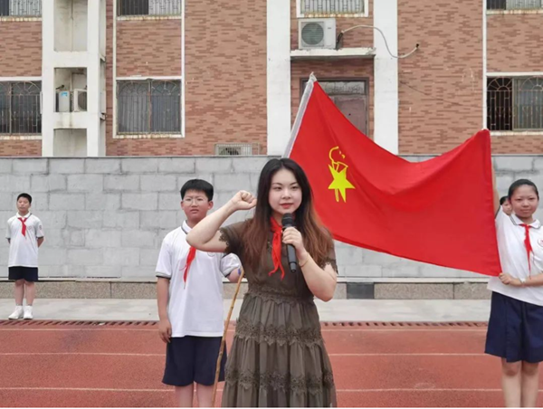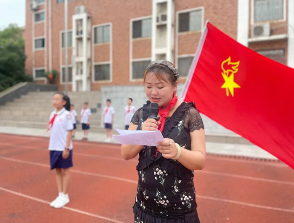 學(xué)校少先隊(duì)大隊(duì)輔導(dǎo)員謝珊珊老師帶領(lǐng)新隊(duì)員進(jìn)行呼號:“準(zhǔn)備著,為共產(chǎn)主義事業(yè)而奮斗!”“時(shí)刻準(zhǔn)備著!”相信隊(duì)員們在革命精神的引領(lǐng)下,從小學(xué)先鋒,長大做先鋒,努力成為能夠擔(dān)當(dāng)民族復(fù)興大任的時(shí)代新人。
