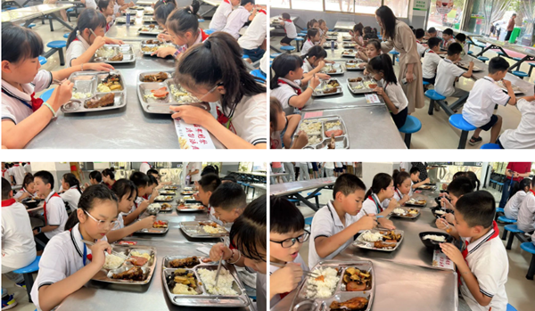 食一餐學一禮,一言一行皆教育。午餐時間,孩子們排著整齊的隊伍來到餐廳,有序打餐,安靜就餐,餐后分類整理。班主任和值班老師隨班就餐,與孩子們共享快樂的校園生活!