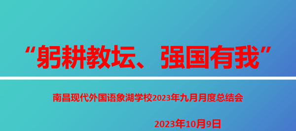 抱樸守拙,行穩(wěn)致遠。為進一步推進我校各項工作有序高效開展,激勵師生工作和學(xué)習(xí)的熱情,全面提升教育教學(xué)質(zhì)量,10月9日,南昌現(xiàn)代外國語象湖學(xué)校召開了9月份月度總結(jié)暨師生表彰會,特邀三位優(yōu)秀學(xué)生代表及其家長參加,會議由辦公室主任夏兆輝主持,集團院校部黃欣??偙O(jiān)、學(xué)校行政及全體教職工參會。