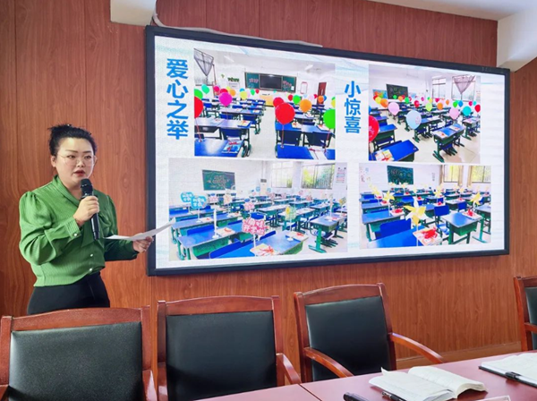 接著,副校長曹蕓宣布了“九月月度人物”獲獎?wù)撸盒W(xué)部一年級組,曹校長隨拍一年級教師們?nèi)蝿谌卧沟墓ぷ鲌鼍昂蛺凵缱拥母腥水嬅妫忈屃私處焸兊娜烁衿焚|(zhì),小事見大愛,一年級組的老師們也因此被冠名為“最美花匠”。