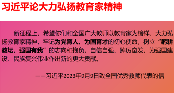 隨后,王校長帶領(lǐng)全體教師學(xué)習(xí)習(xí)近平總書記論大力弘揚教育家精神和總書記對建設(shè)教育強國的重要部署之教師隊伍建設(shè)重要指示精神:全國廣大教師樹立“躬耕教壇、強國有我”的志向和抱負(fù),加強師德師風(fēng)建設(shè),以德立身、以德立學(xué)、以德施教。王校長希望全體教師深學(xué)悟透并且踐行指示精神,牢記為黨育人、為國育才的初心使命,我校將持續(xù)扎實推動師德師風(fēng)建設(shè),弘揚高尚師德,潛心教書育人,營造風(fēng)清氣正的政治生態(tài)和育人環(huán)境。