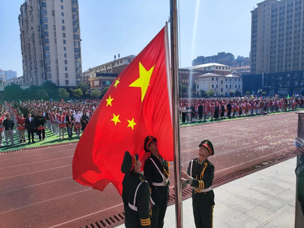 伴隨著激昂的國歌,五星紅旗冉冉升起。全校師生莊嚴肅立,面向國旗行注目禮,一同感受著熱烈的氣氛,向偉大祖國表達最崇高的敬意!