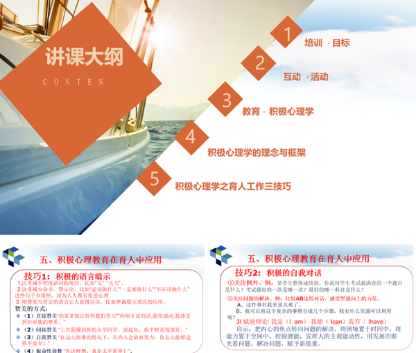 堯老師講授積極心理學(xué)在中小學(xué)教師(幼兒園)育人工作中應(yīng)用實(shí)踐,通過(guò)講述“三個(gè)打漁人”的故事明確告知每個(gè)老師都要成為學(xué)生的心理導(dǎo)師?;顒?dòng)伊始,堯老師帶領(lǐng)大家一起進(jìn)行正念體驗(yàn),讓教師在輕松歡快的氣氛中迅速進(jìn)入本次活動(dòng)。緊接著,堯老師向大家闡述了“什么是積極心理學(xué)”和“積極心理學(xué)在教學(xué)中的育人作用”等方面的內(nèi)容,并以豐富的案例闡述了學(xué)生們的心理是動(dòng)態(tài)變化的,老師們要善于使用心理學(xué)交流技術(shù)給孩子們積極樂(lè)觀(guān)的導(dǎo)向。