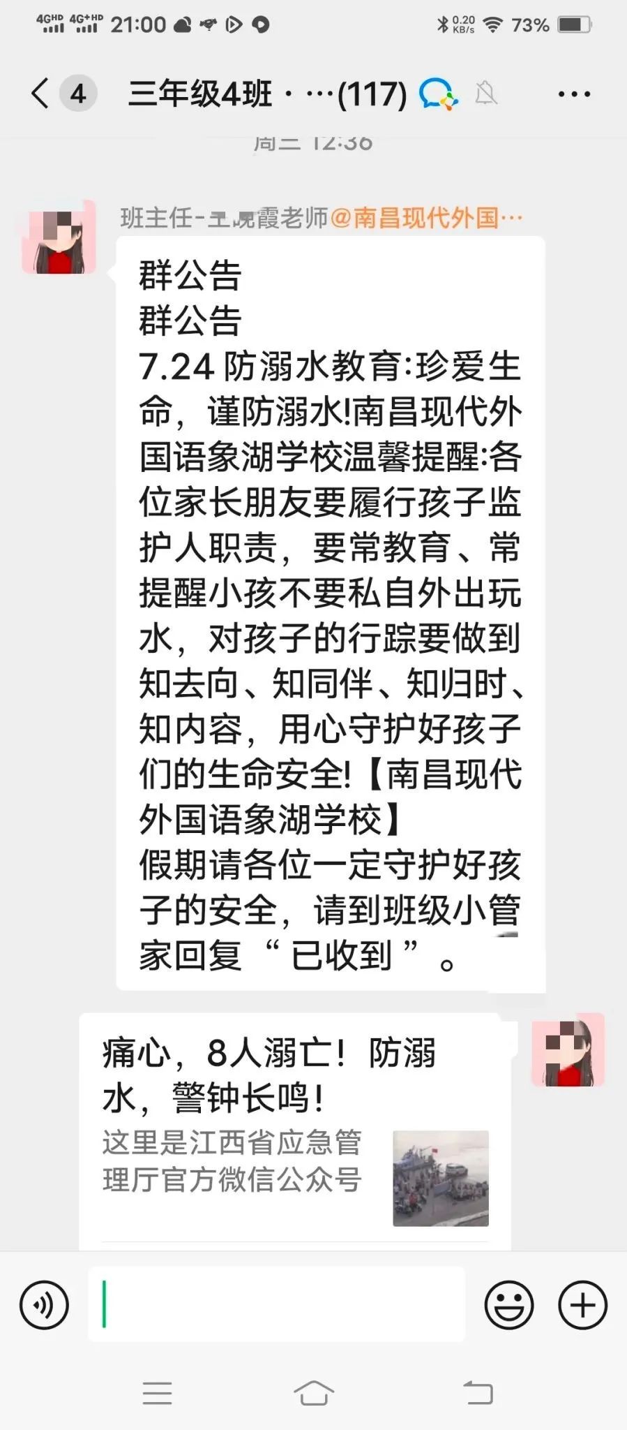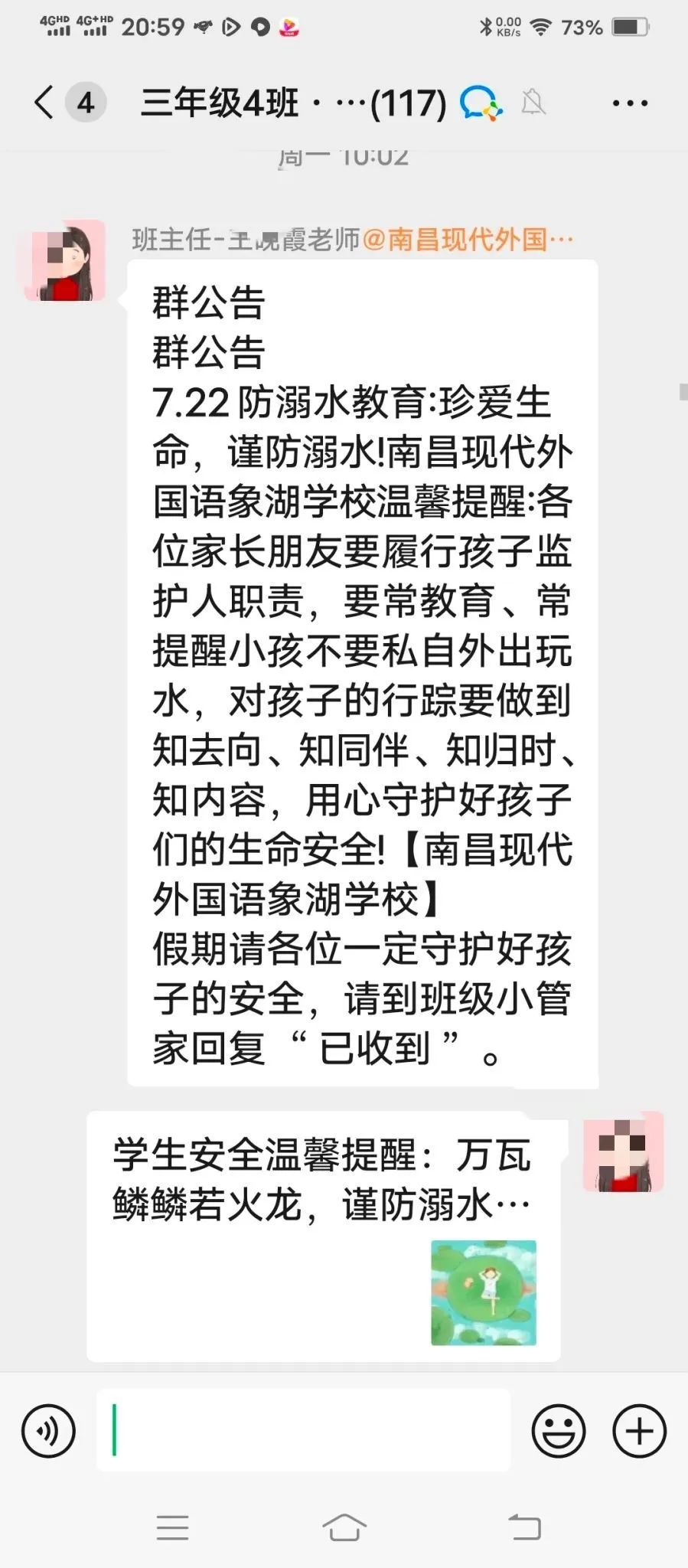 珍愛生命,遠(yuǎn)離危險(xiǎn)。天氣炎熱,防溺水安全工作已成為學(xué)校和家長(zhǎng)關(guān)注的焦點(diǎn),為有效預(yù)防學(xué)生防溺水事故的發(fā)生,南昌現(xiàn)代外國(guó)語象湖學(xué)校暑期開展了防溺水安全教育家訪。