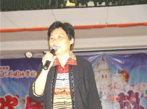現(xiàn)外象湖校區(qū)校長(zhǎng)李金玉在 “六一”兒童節(jié)演出前發(fā)表講話