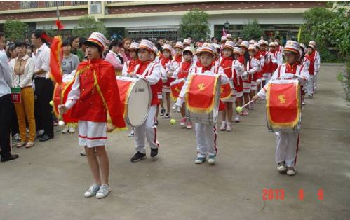 開學典禮上,學校鼓號隊奏響了嘹亮的前進曲。