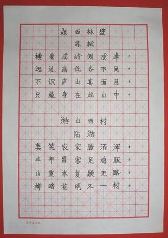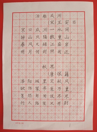 隨著一聲令下,兩校聯(lián)合舉辦的漢字書寫比賽正式開始。在比賽過程中,監(jiān)考老師不停地提醒參賽學生坐姿要端正,胸背要挺直,握筆姿勢要正確,寫字要有筆鋒。在老師的指導下,同學們一個個端正坐姿,認真比賽。比賽過程中,參賽同學們的臉上掛滿了自信的微笑。比賽結(jié)束后,兩校分別派出1名校領(lǐng)導,2名愛好書法的教師共同參加評判。