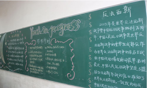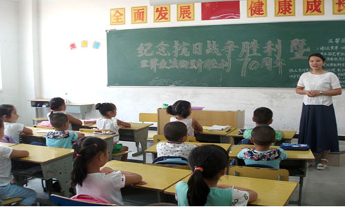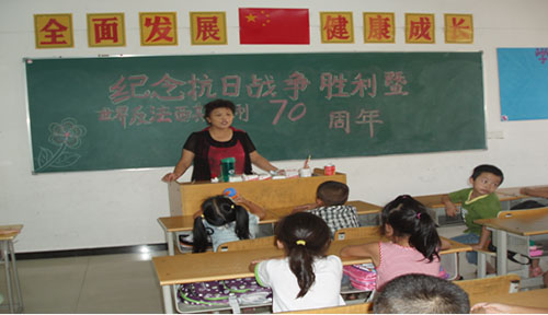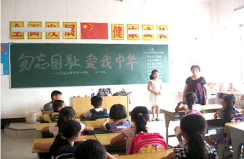李金玉校長利用校園廣播給全校4500多名學(xué)生上了第一課。李校長首先簡要的回顧了抗日戰(zhàn)爭的悲壯歷史,告訴同學(xué)們今天我們能夠坐在教室里享受和平生活,是我們的先人用生命和鮮血換來的,同學(xué)們要倍加的珍惜。同時要求各年級以“勿忘國恥”為主題,中學(xué)部出一期???,小學(xué)部開一次主題班會。讓全體師生全面了解抗戰(zhàn)的歷史、了解黨的豐功偉績和優(yōu)良傳統(tǒng)作風(fēng),在耳濡目染中感受到信念的力量,受到思想的啟迪,銘記歷史、緬懷先烈、珍愛和平、開創(chuàng)未來。