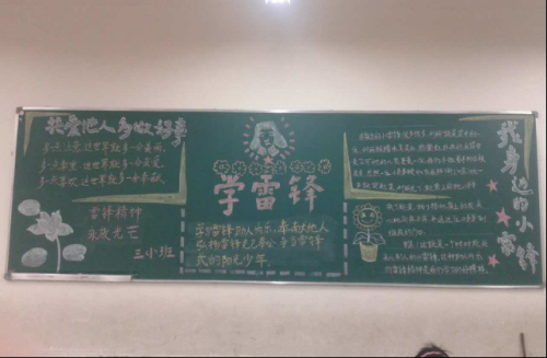此次黑板報評比活動,加深了同學們對雷鋒同志光輝一生的認識,更加深刻地體會雷鋒精神,從而更好的向雷鋒同志學習,有力的推動了學校學雷鋒活動的深入開展。
