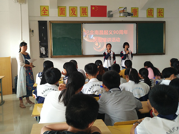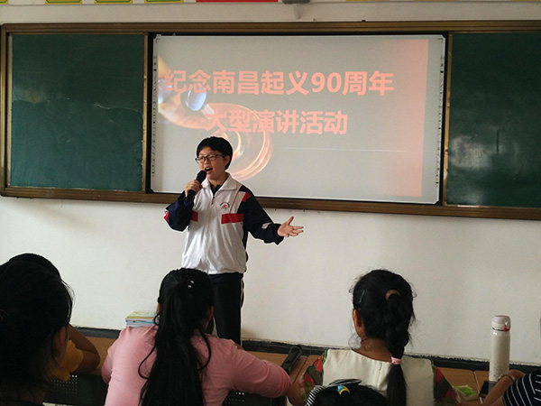 ——記南昌現(xiàn)代外國(guó)語(yǔ)象湖校區(qū)紀(jì)念建軍90周年演講比賽  今年是偉大的中國(guó)人民解放軍建軍90周年,南昌現(xiàn)代外國(guó)語(yǔ)象湖學(xué)校積極籌備,廣泛宣傳,開展了紀(jì)念建軍90周年老少結(jié)對(duì)讀書演講比賽。