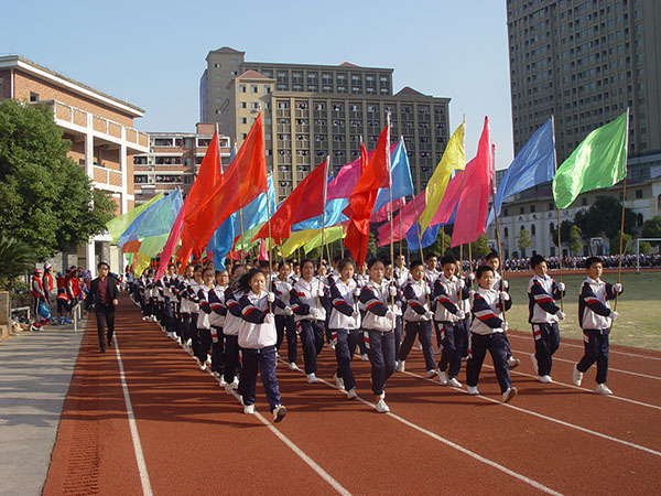 比賽結(jié)束后,李金玉校長(zhǎng)致辭。他代表學(xué)校對(duì)運(yùn)動(dòng)會(huì)的順利舉行表示熱烈祝賀,對(duì)為大會(huì)的召開而辛勤工作、精心準(zhǔn)備、做出貢獻(xiàn)的老師、同學(xué)表示誠摯的謝意。同時(shí)也向本次大會(huì)的裁判員、教練員、運(yùn)動(dòng)員表示崇高的敬意!李校長(zhǎng)從習(xí)總書記的體育強(qiáng)國夢(mèng)講起,希望同學(xué)們通過運(yùn)動(dòng)會(huì),從體育活動(dòng)中感知體育的魅力,強(qiáng)健體魄,將青春與活力在賽場(chǎng)上釋放,也希望開展陽光體育活動(dòng),能讓學(xué)生牢固樹立終身鍛煉的體育健康理念,走進(jìn)陽光,走進(jìn)操場(chǎng),走進(jìn)自然,實(shí)現(xiàn)“每天鍛煉一小時(shí),健康工作五十年,幸福生活一輩子”的美好愿望,奏響生命的最強(qiáng)音。最后,李校長(zhǎng)從四個(gè)方面,對(duì)全校師生、運(yùn)動(dòng)員提出了相關(guān)要求。運(yùn)動(dòng)員代表胡雅瓊、裁判員代表糜霞依次在國旗下莊嚴(yán)宣誓。