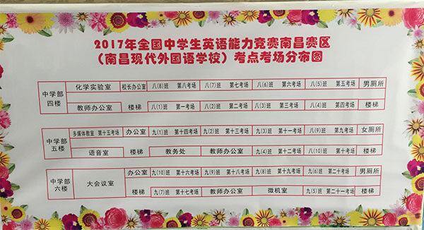 11月12日,2017年全國(guó)中學(xué)生英語(yǔ)能力競(jìng)賽(NECPS)初賽南昌賽區(qū)在我校舉行,來(lái)自來(lái)自多校600多名學(xué)生參加考試。作為本次初賽的考點(diǎn)之一,我校領(lǐng)導(dǎo)高度重視此項(xiàng)工作,從監(jiān)考教師的配備到橫幅及考場(chǎng)指示牌、考點(diǎn)分布圖的溫馨提示,都做好了充分的準(zhǔn)備??记?,學(xué)校組織全體考務(wù)人員進(jìn)行了培訓(xùn)。在各部門的通力配合下,各考場(chǎng)布置嚴(yán)肅規(guī)范,很好地完成了考場(chǎng)布置等工作。