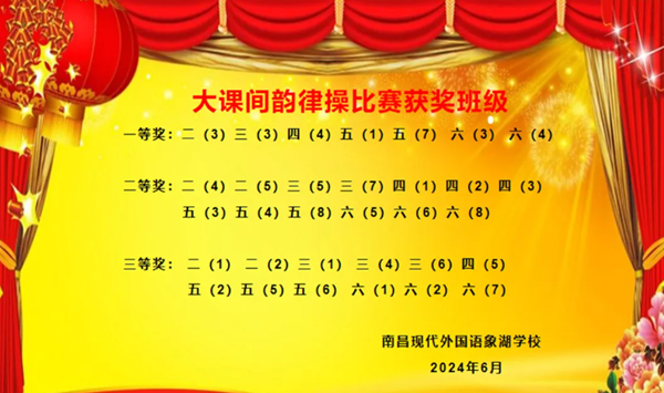 經(jīng)過(guò)緊張的比拼,評(píng)委們依次從同學(xué)們的進(jìn)、退場(chǎng)紀(jì)律,動(dòng)作準(zhǔn)確性,精神面貌,動(dòng)作整齊度等多方面對(duì)各個(gè)班級(jí)的比賽情況進(jìn)行了評(píng)分,最后評(píng)出了各年級(jí)一、二、三等獎(jiǎng)。
